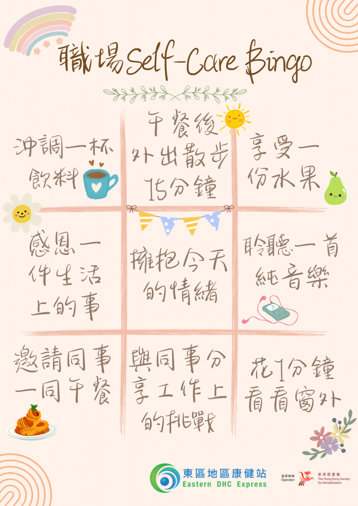 邀請大家可以參考以下的關顧自我小卡,每天花少許時間關心自己。