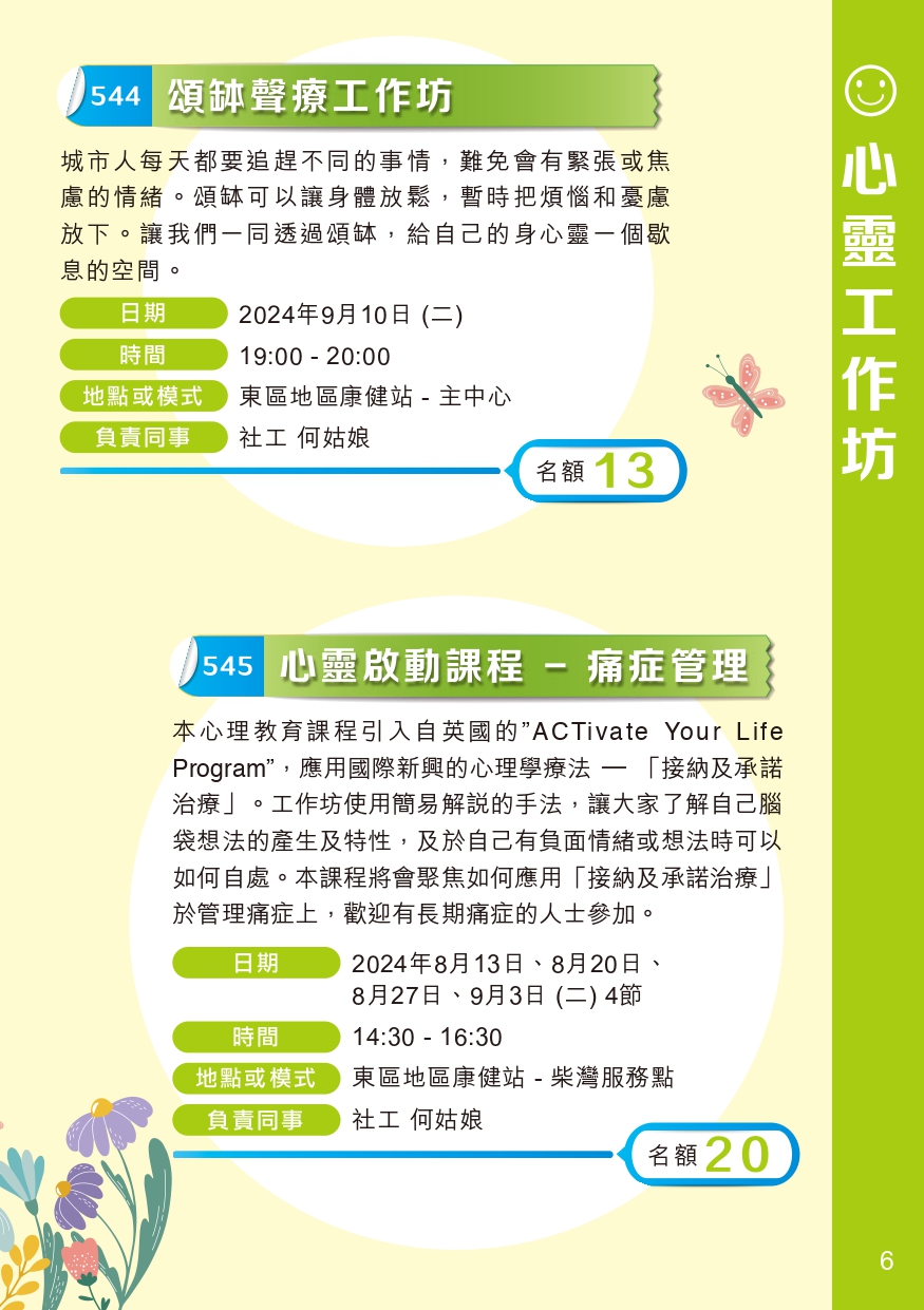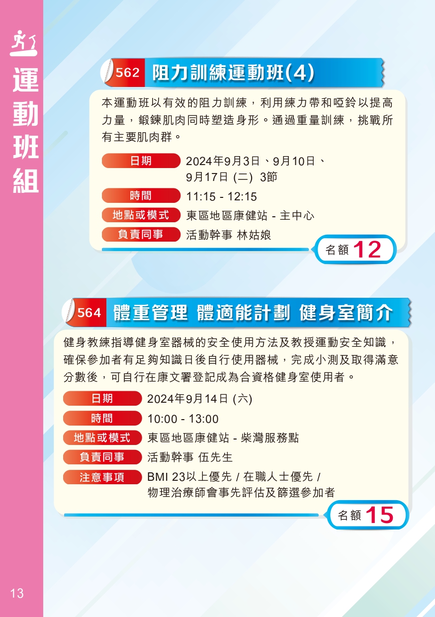 提提大家,今個季度活動報名開始日期係6月12號(星期三)下午2:30開始,記得我哋只接受電話報名(不接受電話留言報名)