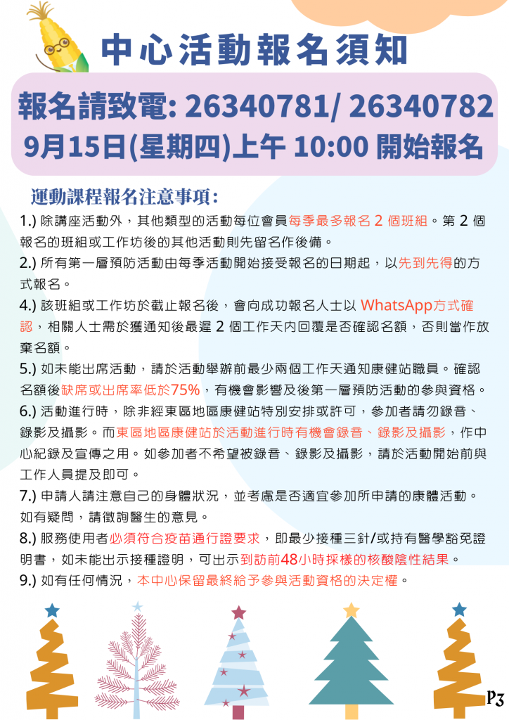 因應疫情不鼓勵人群聚集,是次報名只提供電話熱線報名 2634 0781 / 2634 0782