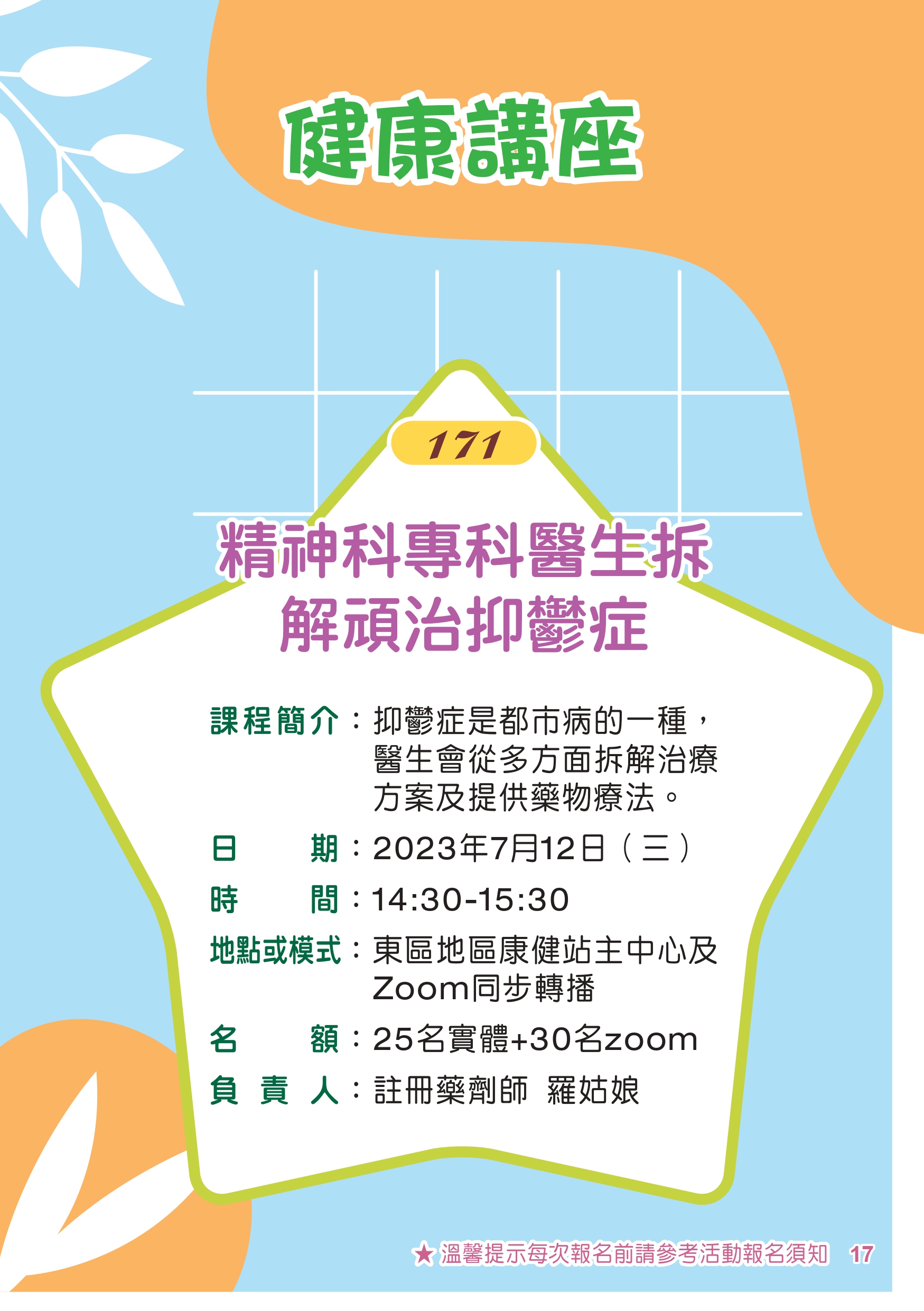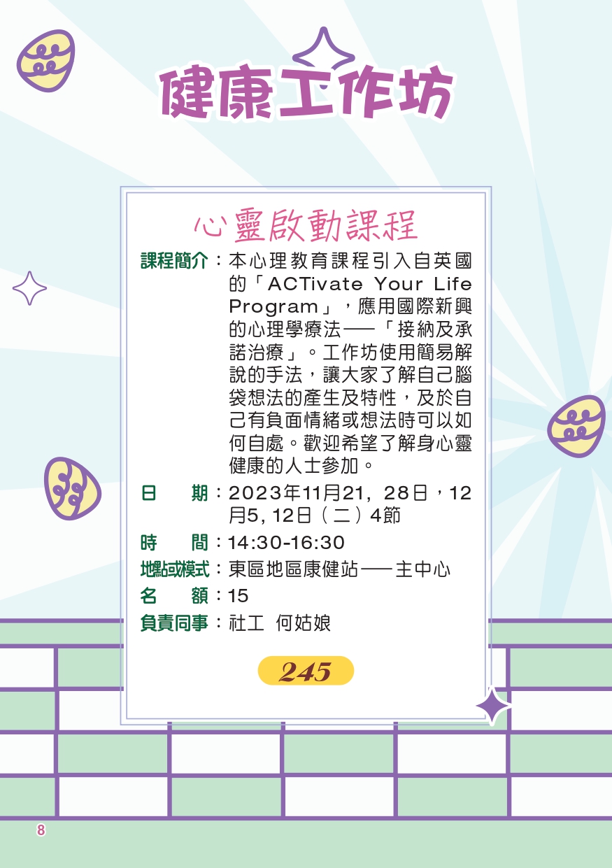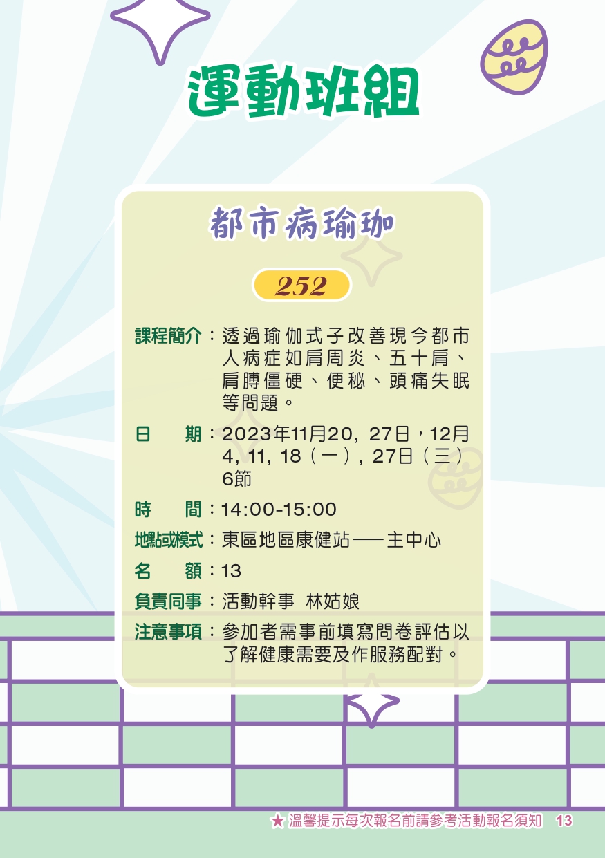 想掌握最新服務擴充資訊!敬請留意東區地區康健站網站或Facebook更新!