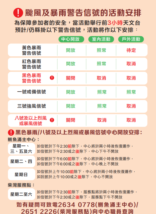 提提大家,今個季度活動報名開始日期係6月12號(星期四)開始,你可以選擇電話報名或者線上報名(不接受電話留言報名)。
